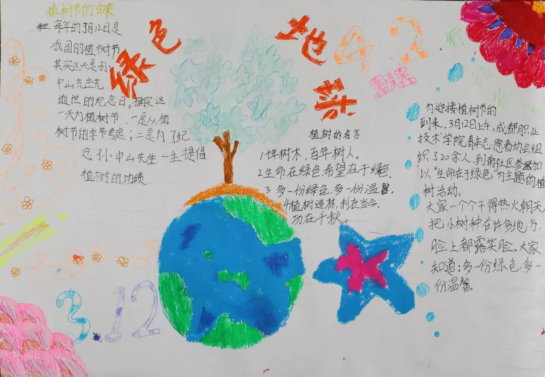每一张手抄报皆是全班同学智慧的结晶,他们以植树节活动为切入点,把“植树、护树、爱绿”的生态文明观念融入在每一幅画与字里行间之中。